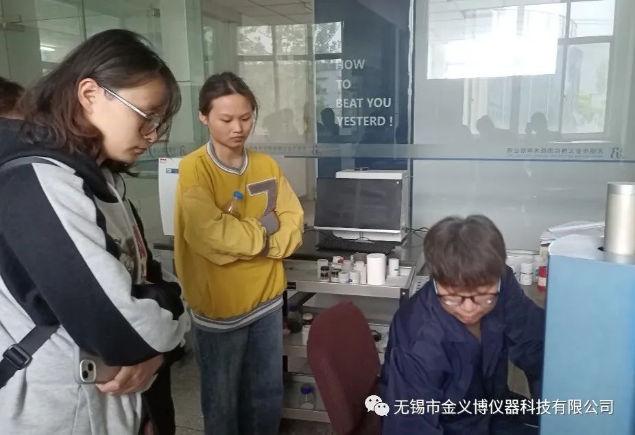 江蘇省機械工程學會化學檢驗培訓的同學們在金義博儀器科技有限公司實踐考試。